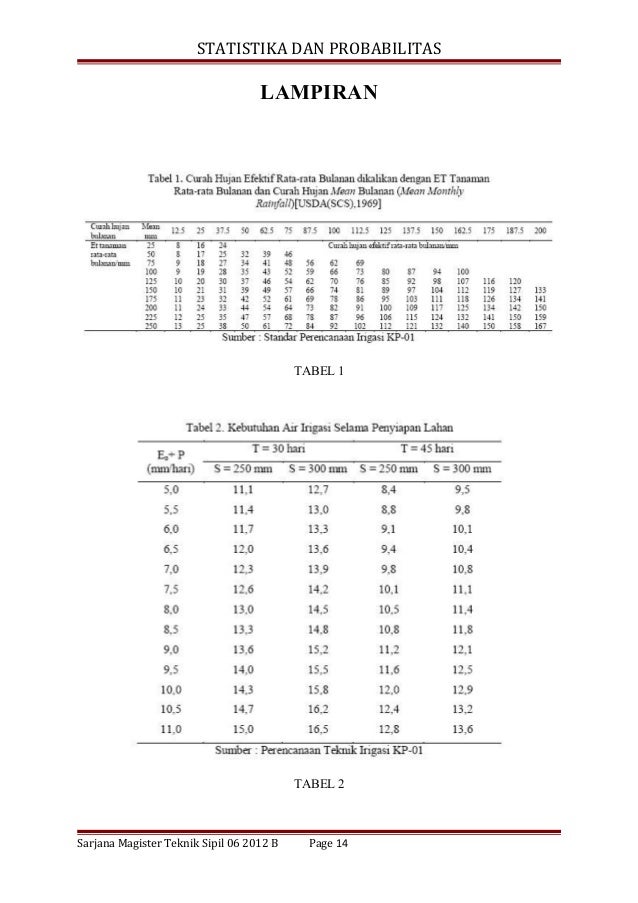 Di dalamnya diperlukan pemahaman akan materi-materi teknik sipil yang berupa teori dan perhitungan yang harus tepat. Contohpenggunaan statistika dalam bidang teknik sipil adalah dalam membuat dan membaca tabelkarena dalam membuat tabel tersebut kita harus meneliti dan mengetahui caranyaPENGELOLAAN DISTRIBUSI AIR IRIGASI SECARA OPTIMAL Pengelolaan atau pengaturan air irigasi secara optimal dipengaruhi oleh kebutuhan airirigasi ketersediaan air pembagian. Mahasiswa mampu menguraikan lingkup kerja Teknik Sipil dengan berbagai sub keahliannya pada suatu sistem yang terkait dengan pekerjaan Teknik Sipil 2.