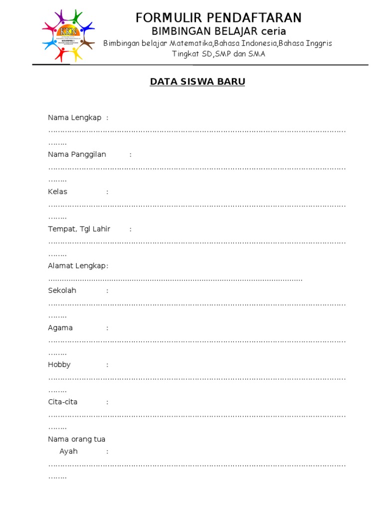 Contoh Formulir Pendaftaran Bimbel Doc Materi Pelajaran 7