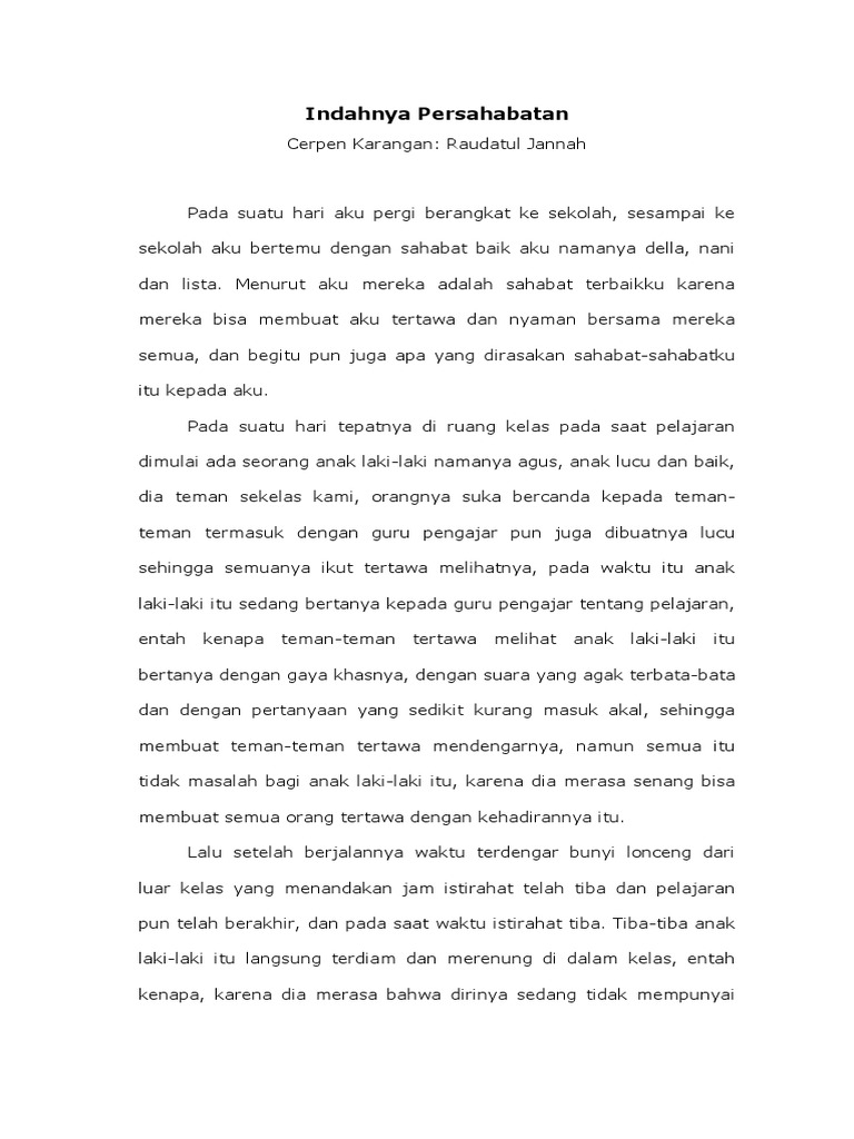 Pada kesempatan kali ini akan diulas mengenai contoh cerpen singkat terbaik yang bisa dijadikan sebagai bahan bacaan Anda. - PDF Free Download Cerpen sahabat kecil masa kecilku Cerpen Persahabatan Sajak persahabatan - PDF Document ANALISIS GAYA BAHASA CERPEN ARWANA DAN PERSAHABATAN SUNYI KARYA HARRIS EFENDY THAHAR Cerpen Bahasa Jawa Tentang Persahabatan Terbaru UNIVERSITI PUTRA MALAYSIA ANALISIS TAKMILAH CERPEN. Contoh Cerkak Bahasa Jawa Atm Budaya Nusantara.