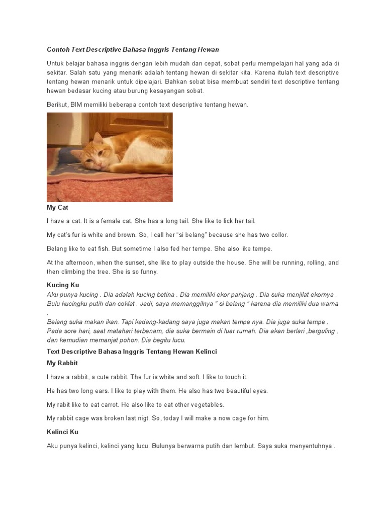 20201203 Terjemahan Contoh Descriptive Text Singkat Saya punya kelinci. Contoh descriptive text tentang hewan panda Contoh Descriptive Text tentang Restaurant Mama Makan Amsterdam By Pustaka Bahasa Inggris Posted on January 5 2019 November 2 2019. Though it belongs to the order carnivora pandas diet is over 99 bamboo.