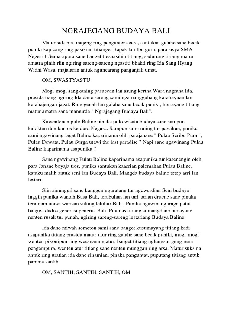 20201009 Contoh Kata Sambutan Dalam Bahasa Bali. Contoh Pidato Bahasa Bali Tentang Narkoba 36. 20201105 Contoh Pidato Dalam Bahasa Bali Nov 05 2020 Contoh Teks Pidato Bahasa Bali Contoh Contoh Pidato Bahasa Bali informasi lowongan pekerjaan bulan ini Pidato Bahasa Bali Saraswati Contoh Pidato Pendek Bahasa Bali.