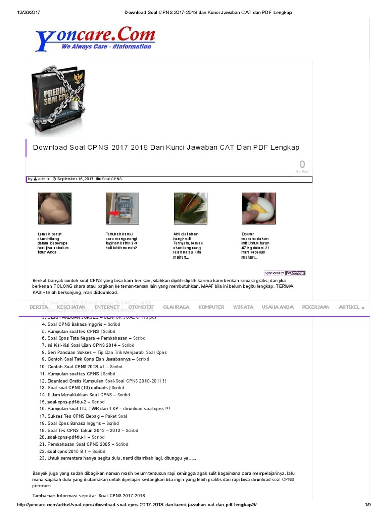 Download Soal Cpns 2017 2018 Dan Kunci Jawaban Cat Dan Pdf Lengkap